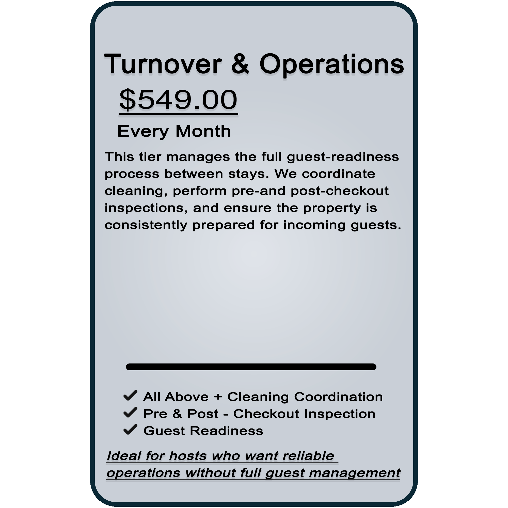 “All our plans include professional oversight & coordination. Cleaning costs are billed per turnover based on booking volume. Click each plan for details.”